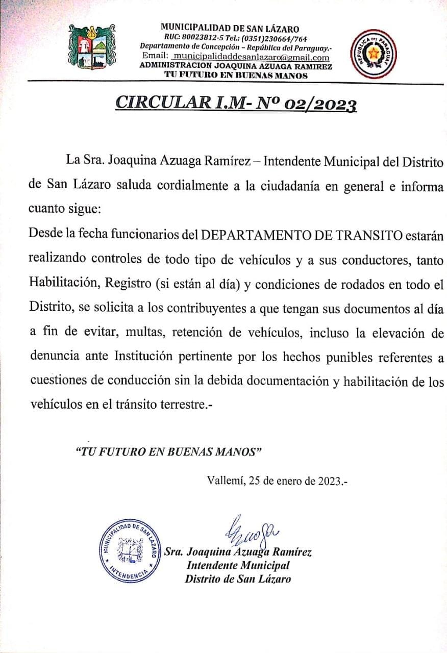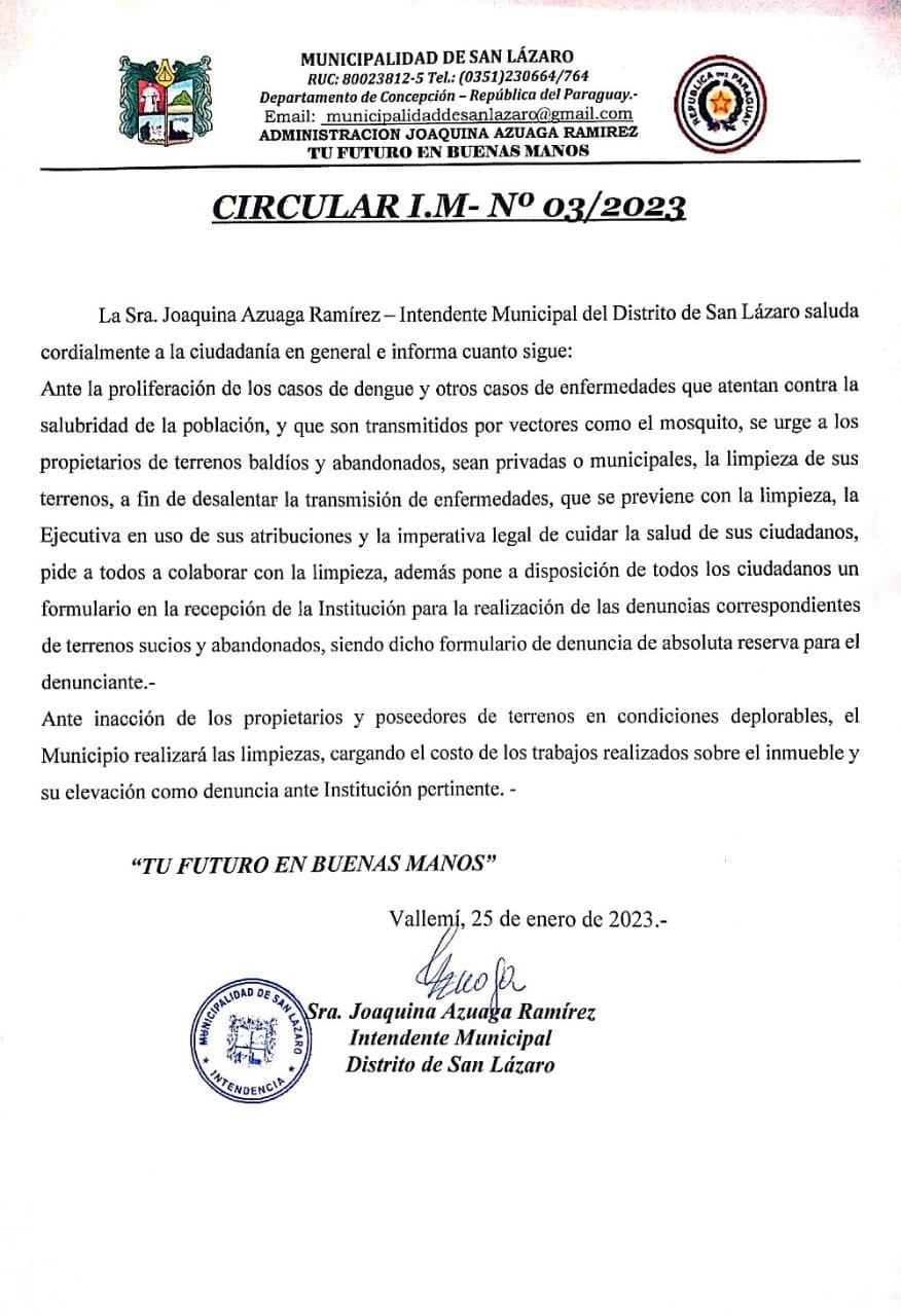 • Atención! Desde la Municipalidad del Distrito de San Lázaro informamos a la ciudadanía en general